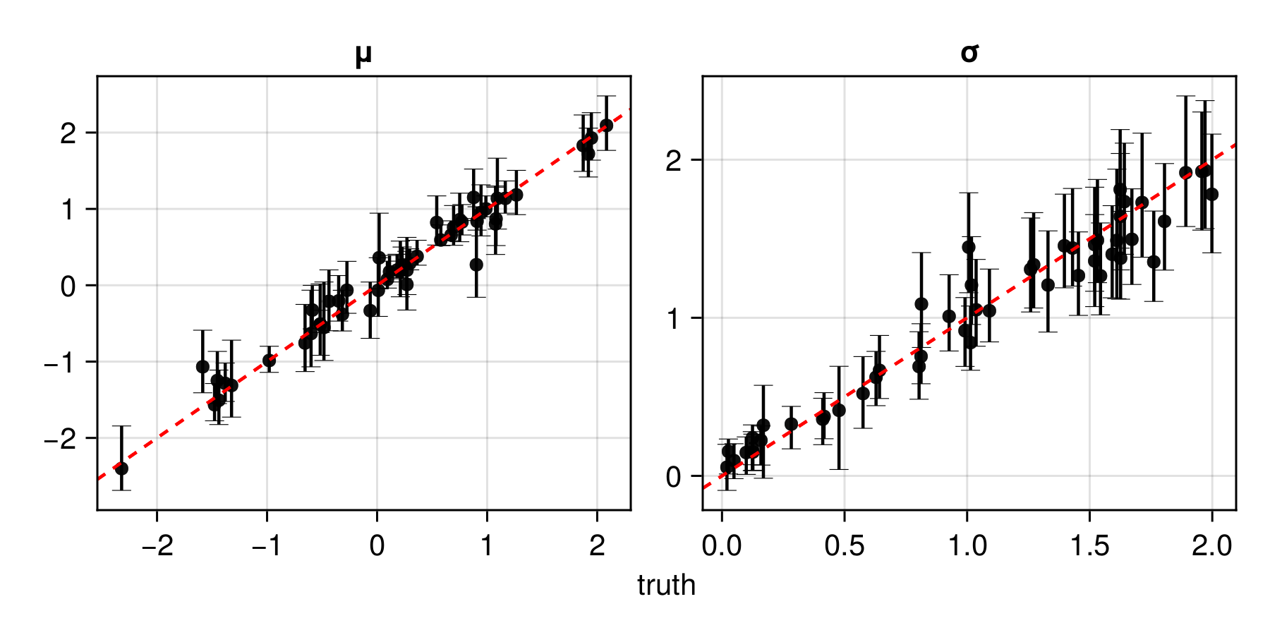 assessment = assess(estimator, θ_test, Z_test)The resulting Assessment object contains ground-truth parameters, estimates, and other quantities that can be used to compute quantitative and qualitative diagnostics: